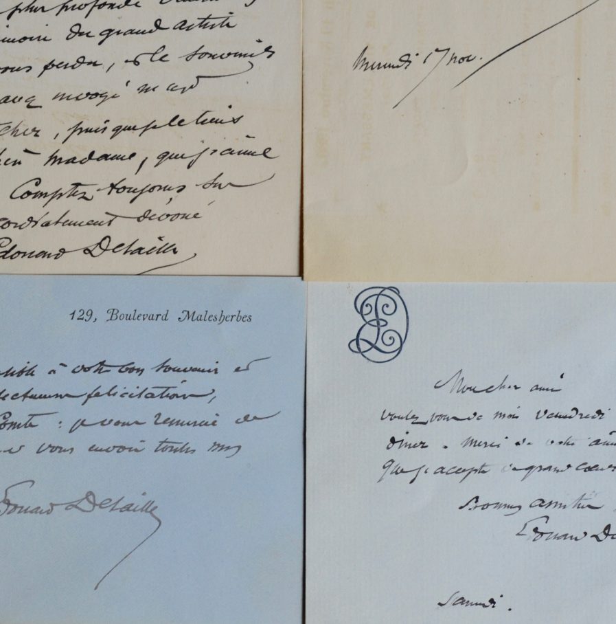Deux lettres et deux cartes autographes signées d'Edouard Detaille.