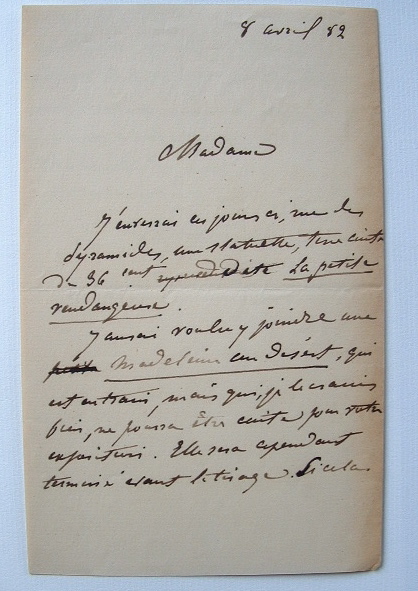 Lettre au sujet de La Petite Vendangeuse, statue conservée au musée de Grenoble : «J'enverrai ces jours-ci, rue des Pyramides, une statuette, terre cuite, dite La Petite Vendangeuse. J'aurai voulu y joindre une Madeleine au désert, qui est en train, mais qui, je le crains bien, ne pourra être cuite pour votre exposition [...]».