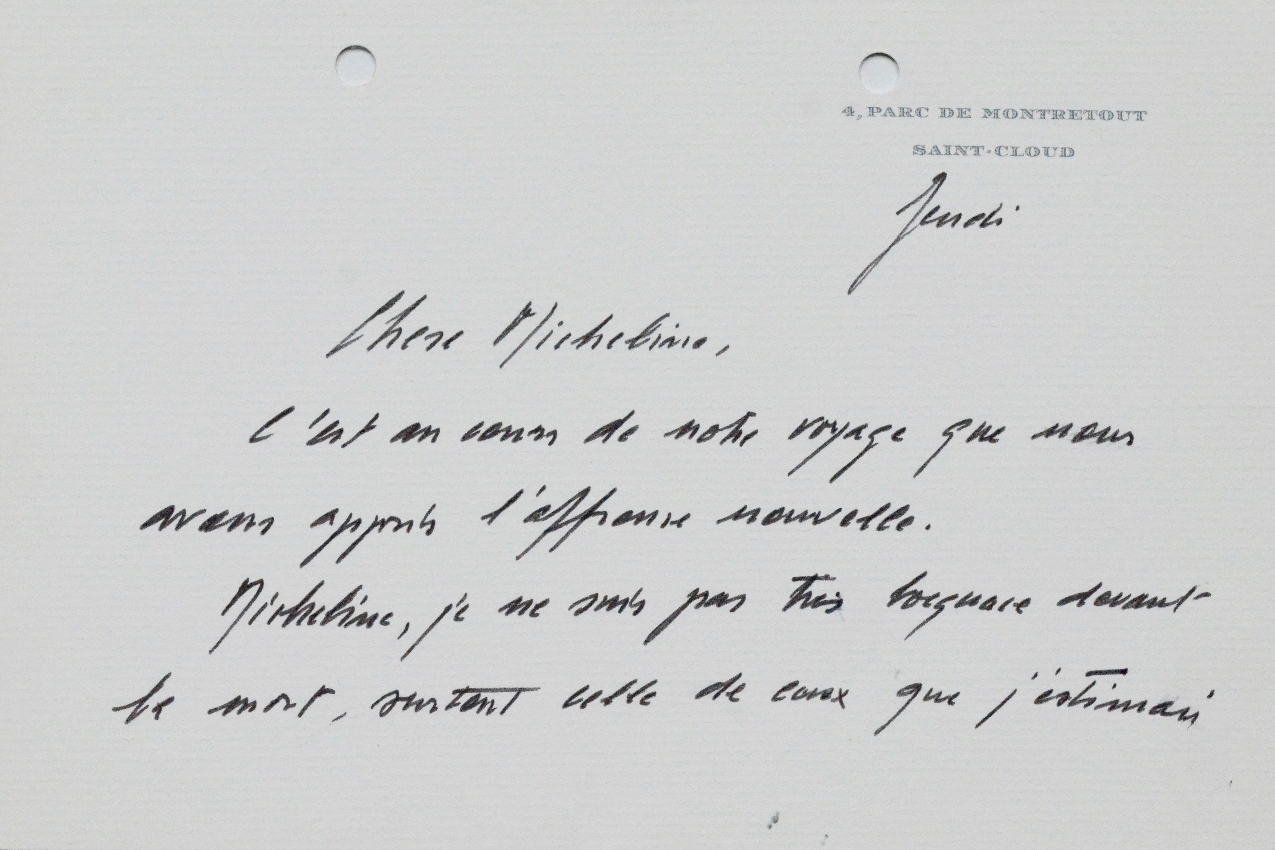 Adresse imprimée en tête "4, parc de Montretout Saint-Cloud".