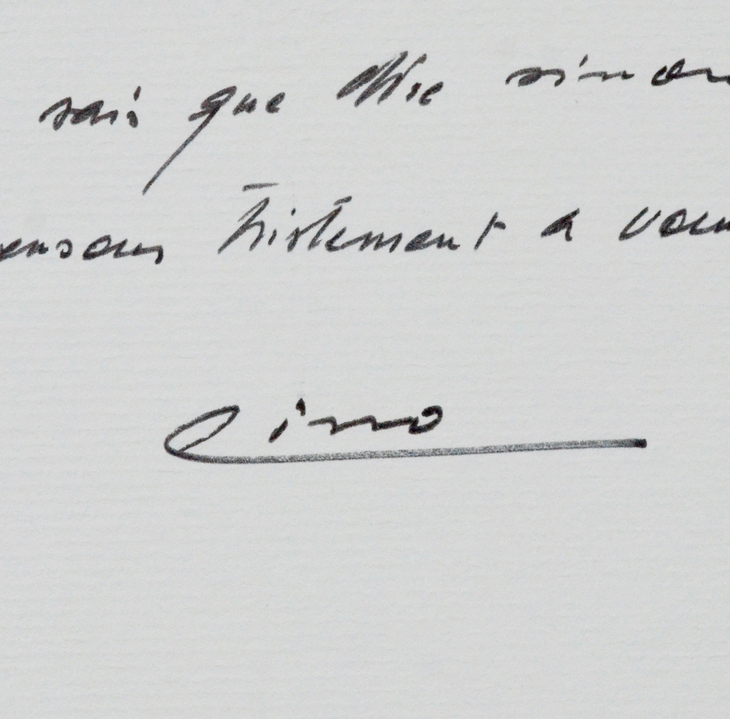 Très émouvante carte de Lino Ventura adressée à Micheline Meurisse, après la mort de Paul Meurisse, son inoubliable partenaire de l'Armée des Ombres :