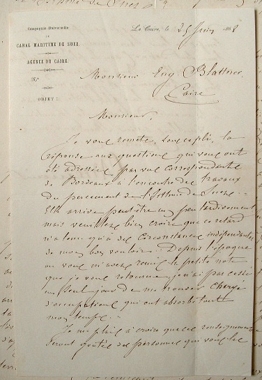 En-tête de la Compagnie universelle du Canal Maritime de Suez - agence du Caire.