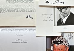 Ensemble d’autographes de personnalités israéliennes et palestiniennes.