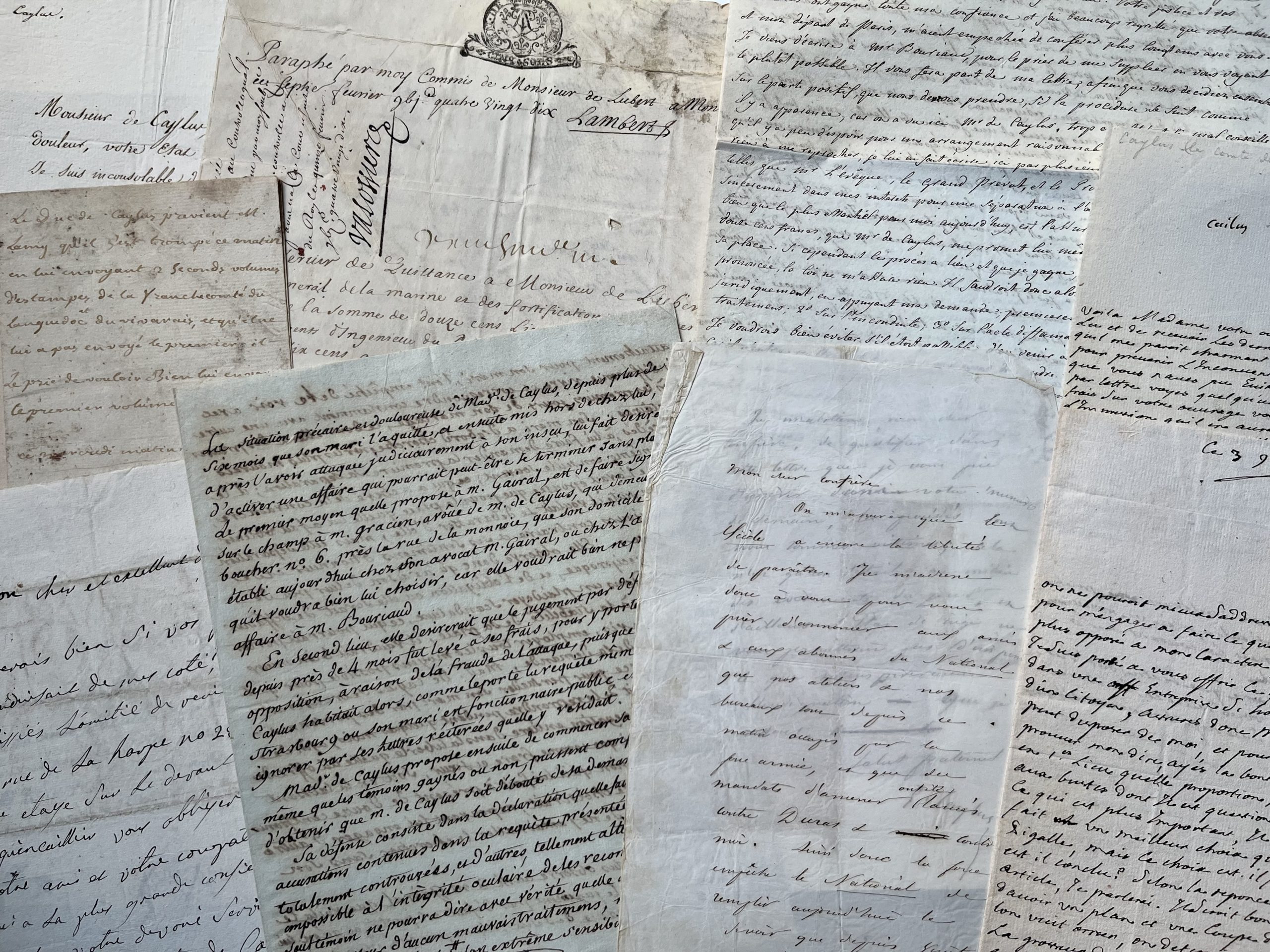 Ensemble de 10 lettres et documents XVIIIe-XIXe de (ou concernant) la famille de Caylus