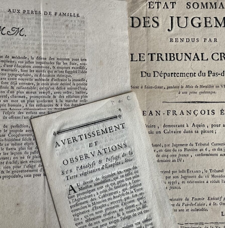 Ensemble de 3 imprimés du XVIIIe siècle, relatifs au Pas-de-Calais