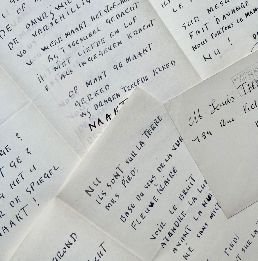 Tous commencent par le mot "Naakt" / "Nu". Sur la première page, le poète à inscrit en français le titre "De toutes coeur" et signé.