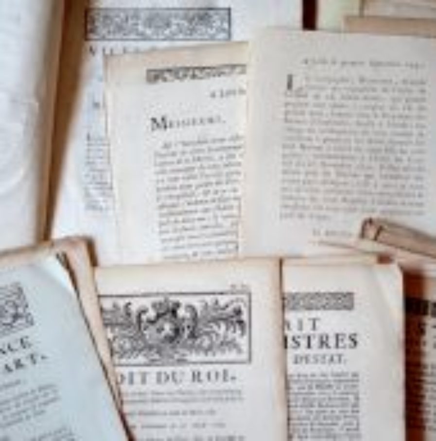 - 6 ordonnances, édits, extrait des registres du Conseil d'état, concernant les étoffes, les grains, les négociants de Lille et la région, etc. 1677-1781.