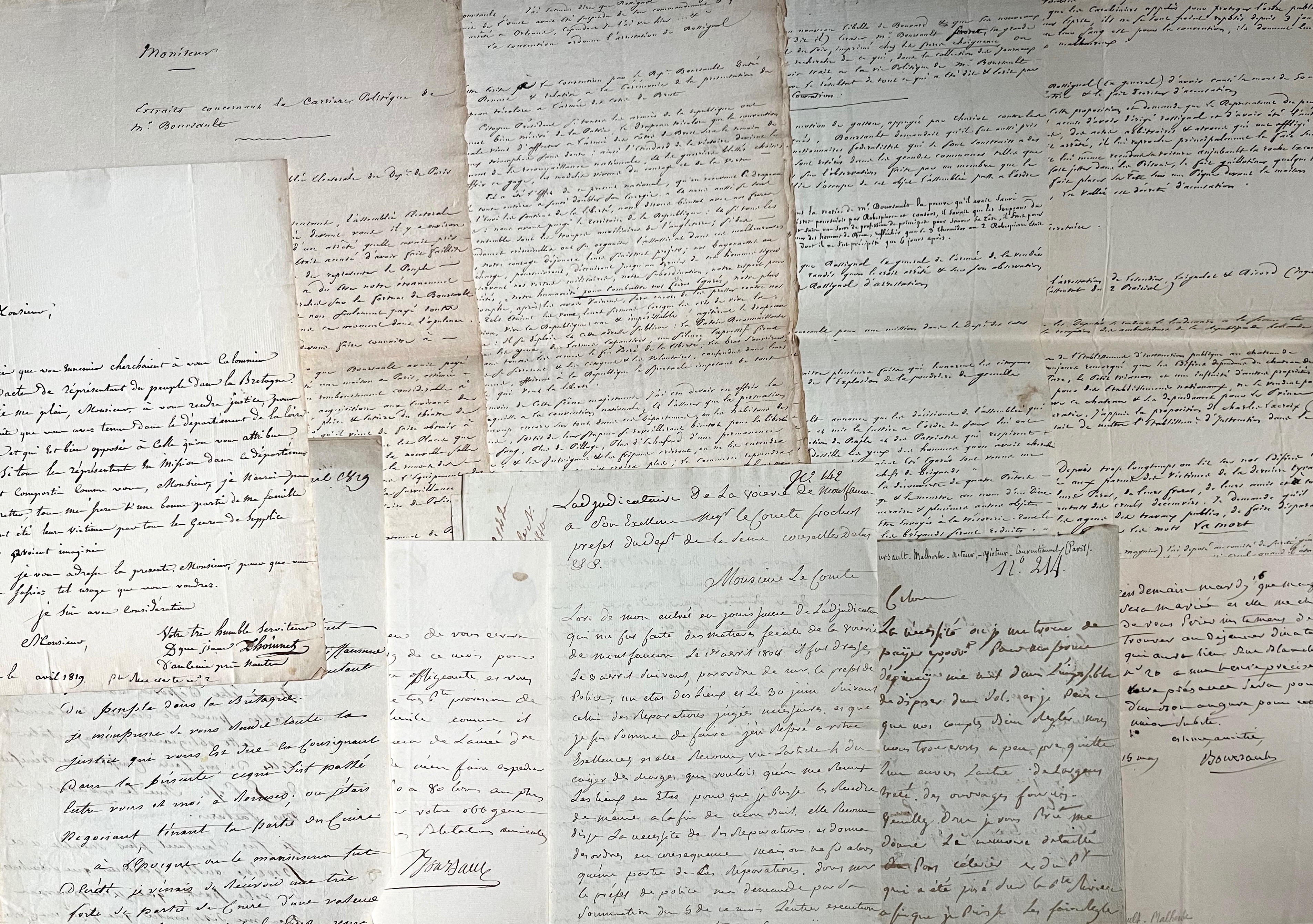 Ensemble de 9 manuscrits et lettres de Jean-François Boursault-Malherbe sur son action en Bretagne durant la Révolution