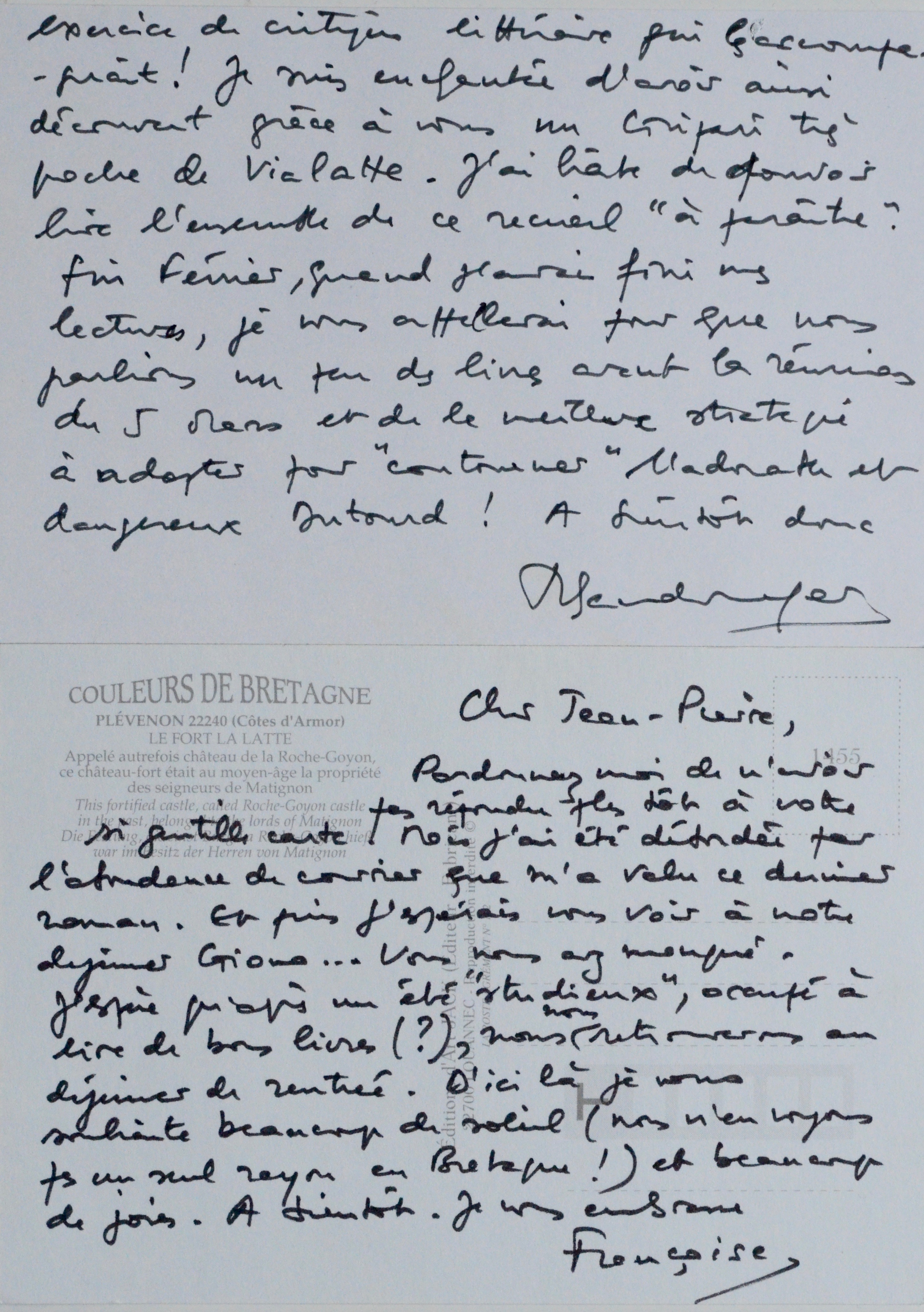 Ensemble de deux cartes de Françoise Chandernagor