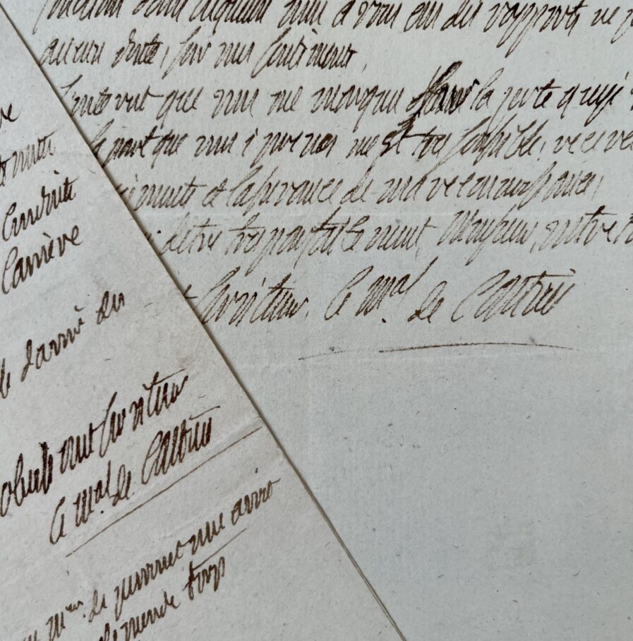 -8 novembre 1795 : "L’estime que vous m’aves inspirée, Monsieur, dans les différentes fonctions dans lesquelles nous avons eu des rapports ne peut vous laisser aucun doute, sur mes sentiments. L'intérêt que vous me marquez pour la perte que je viens de faire et la part que vous y prenez me sont très sensibles [...]".