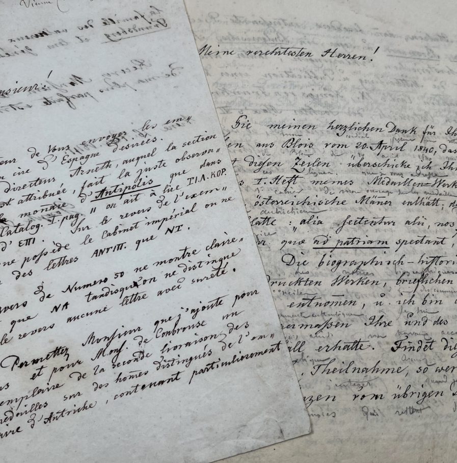 Ensemble de deux lettres du numismate autrichien Josef von Bergmann