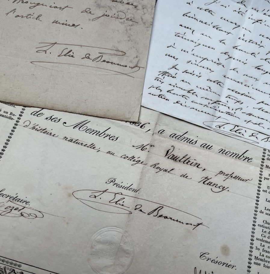 Ensemble de 3 documents du géologue Léonce Élie de Beaumont :