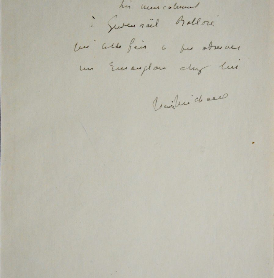 Envoi autographe signé d’Henri Michaux à Gwen-Aël Bolloré, sur papier Japon