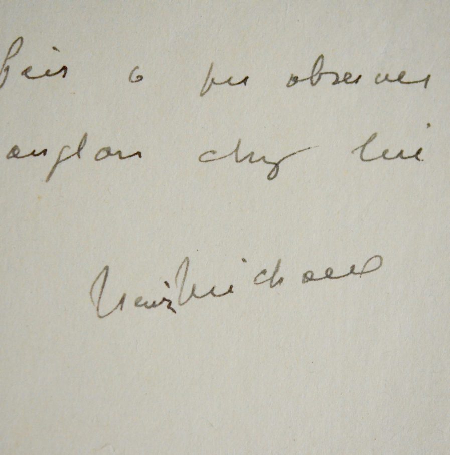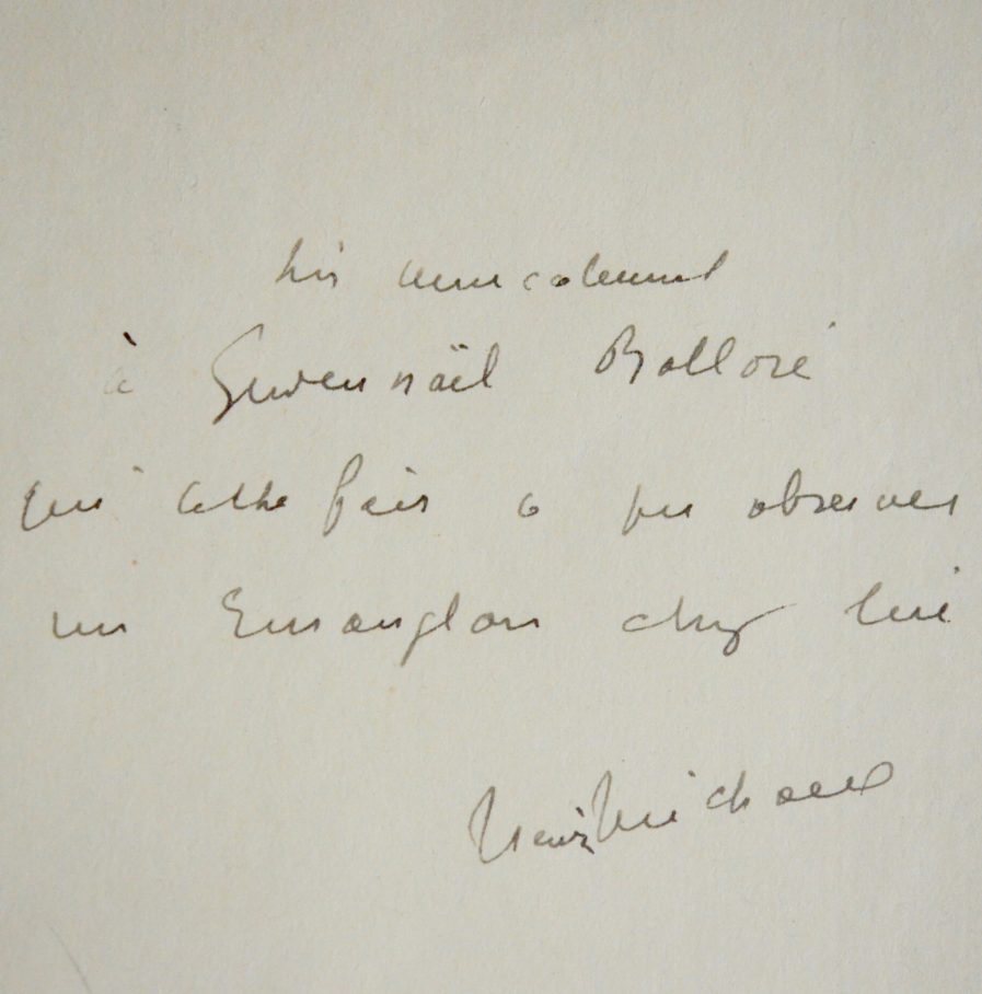 "Très amicalement à Gwennaël Bolloré qui cette fois a pu observer un exemplaire [?] chez lui. Henri Michaux".