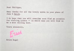 Après un article élogieux. "Many thanks for all the lovely words in your piece of June 6 Match. I do hope that you will sometime soon find an occasion for visiting London - in which car you will find in me a most willing host".