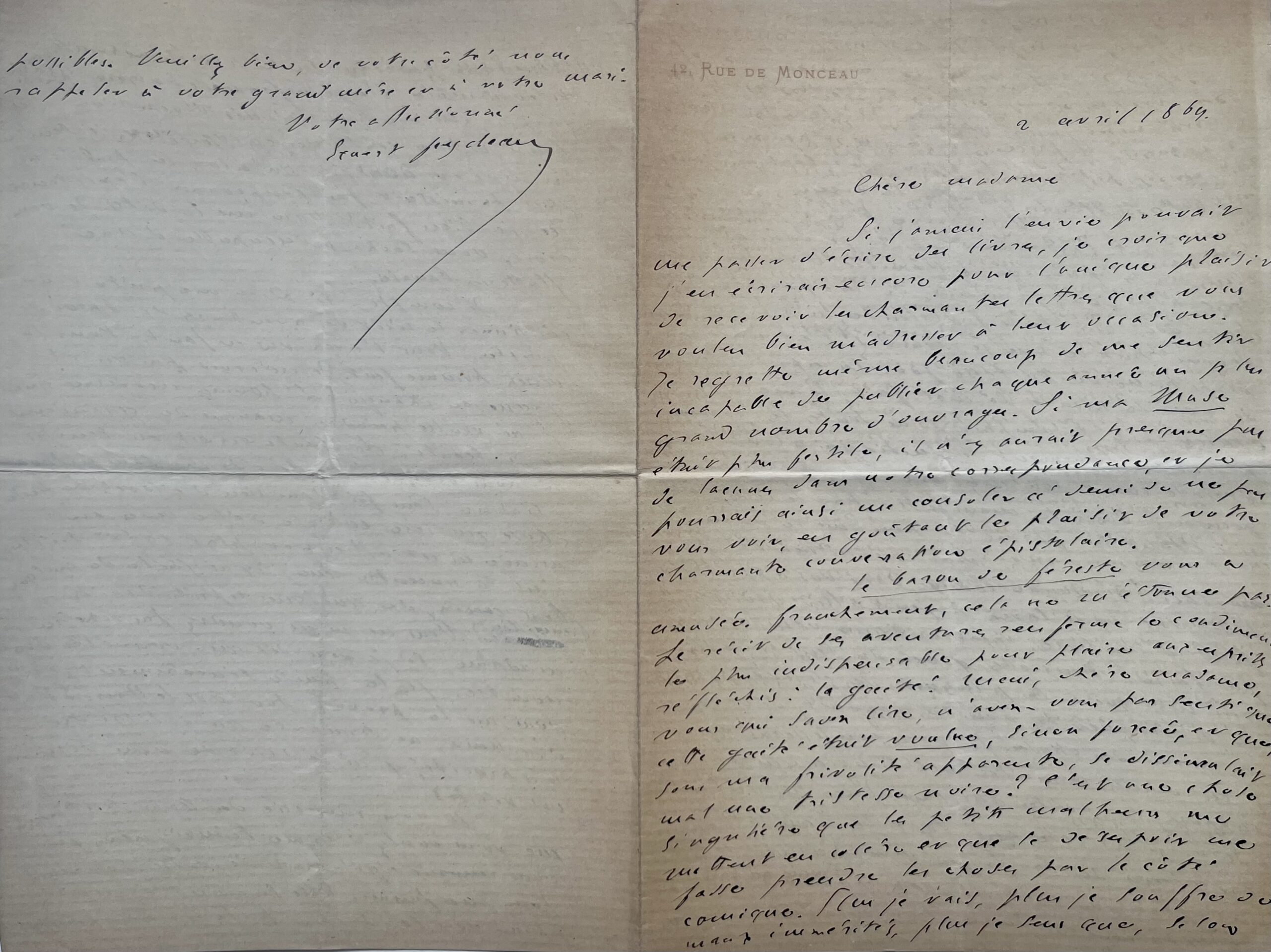Ernest Feydeau (Paris, 1821/1873)Type de document : lettre autographe signée