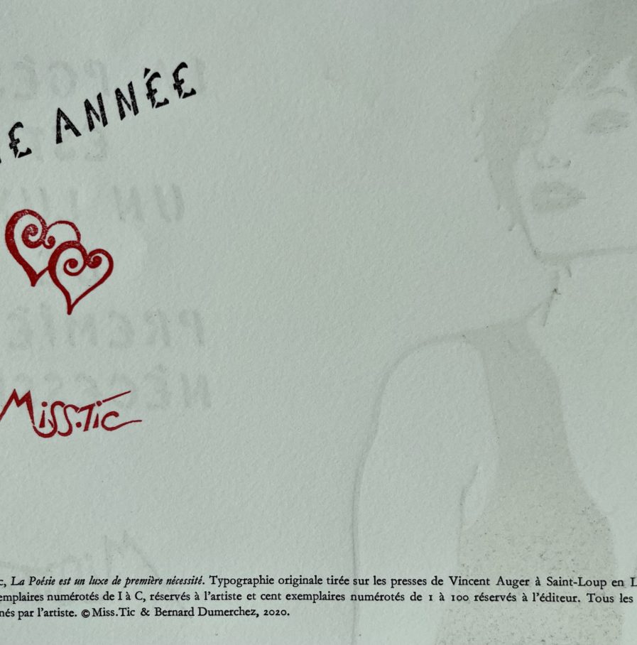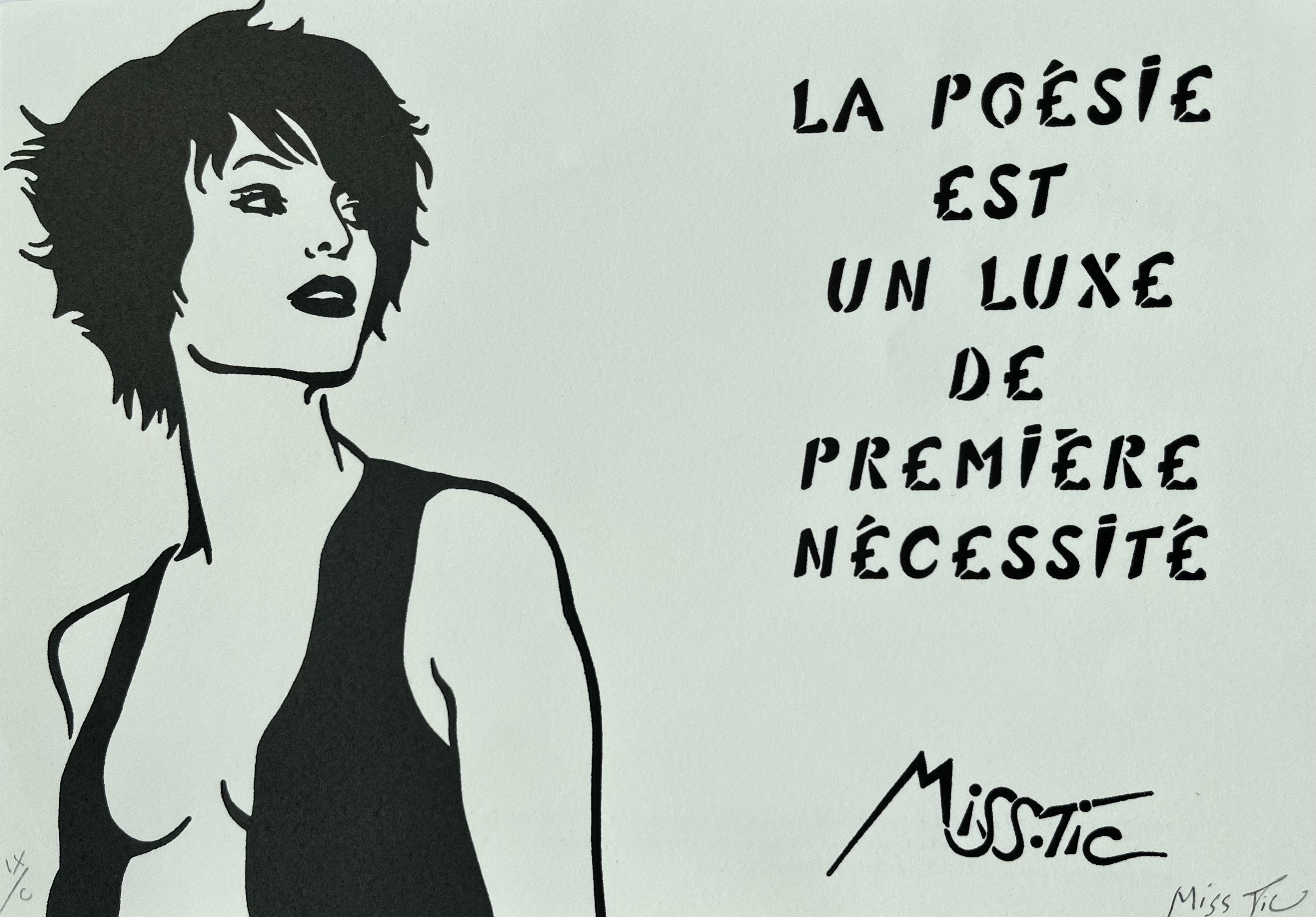 Lithographie signée et numérotée de Miss.Tic : « La poésie est un luxe de première nécessité »
