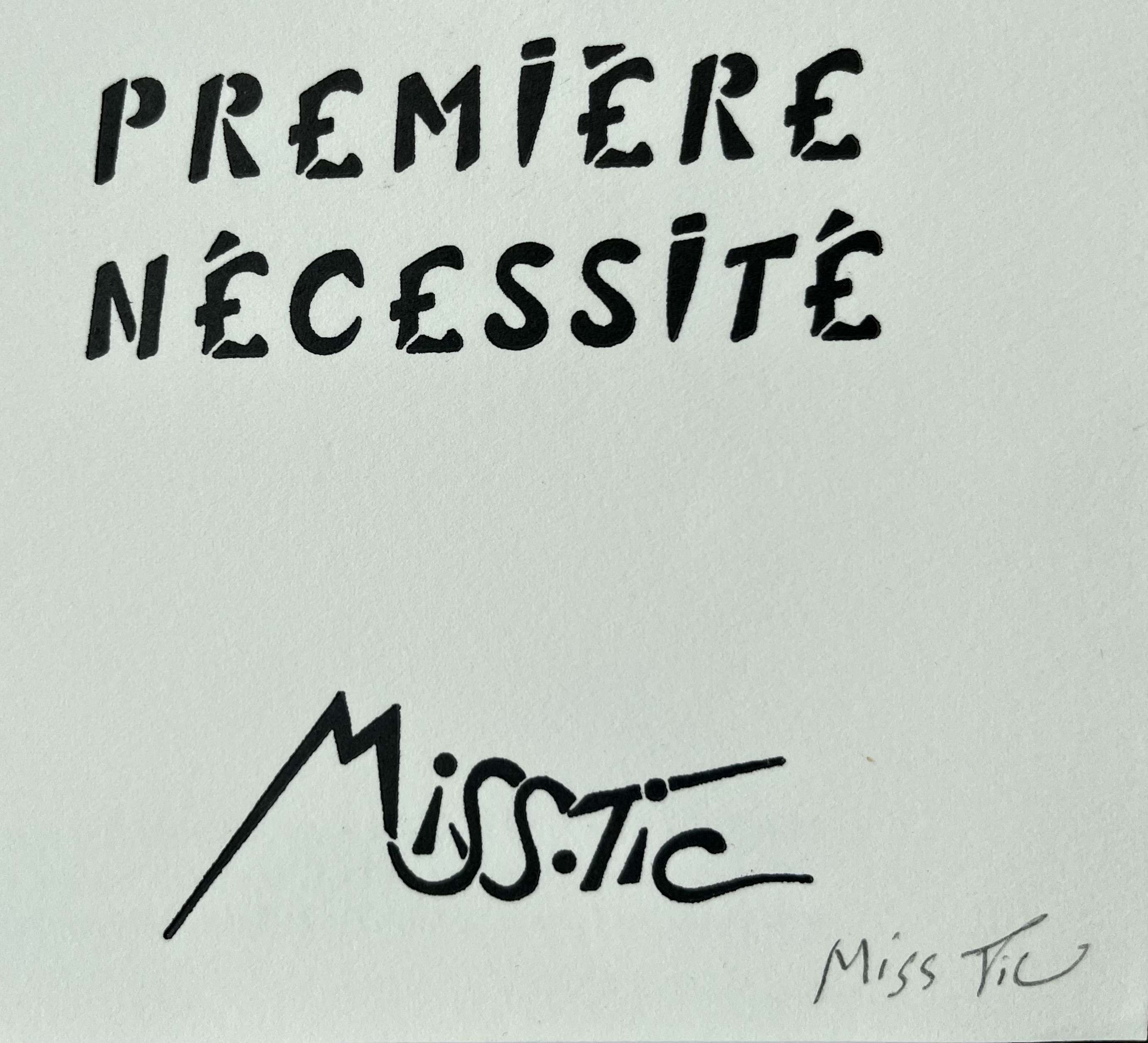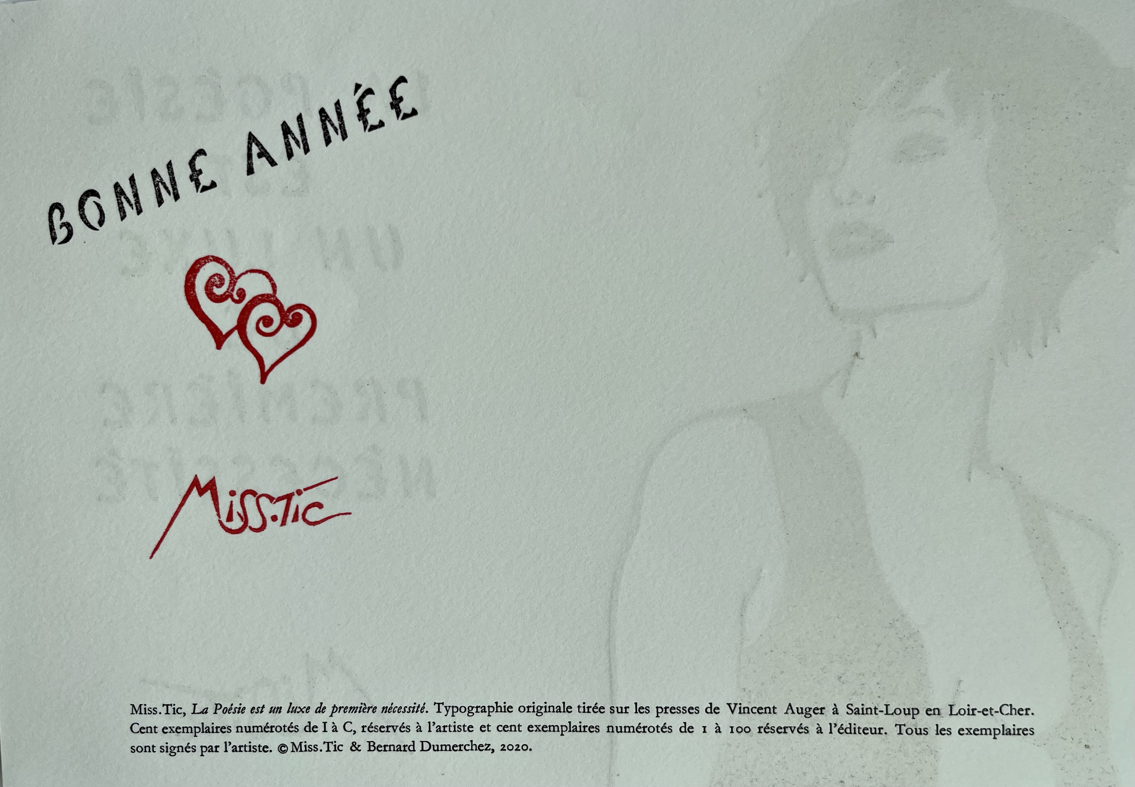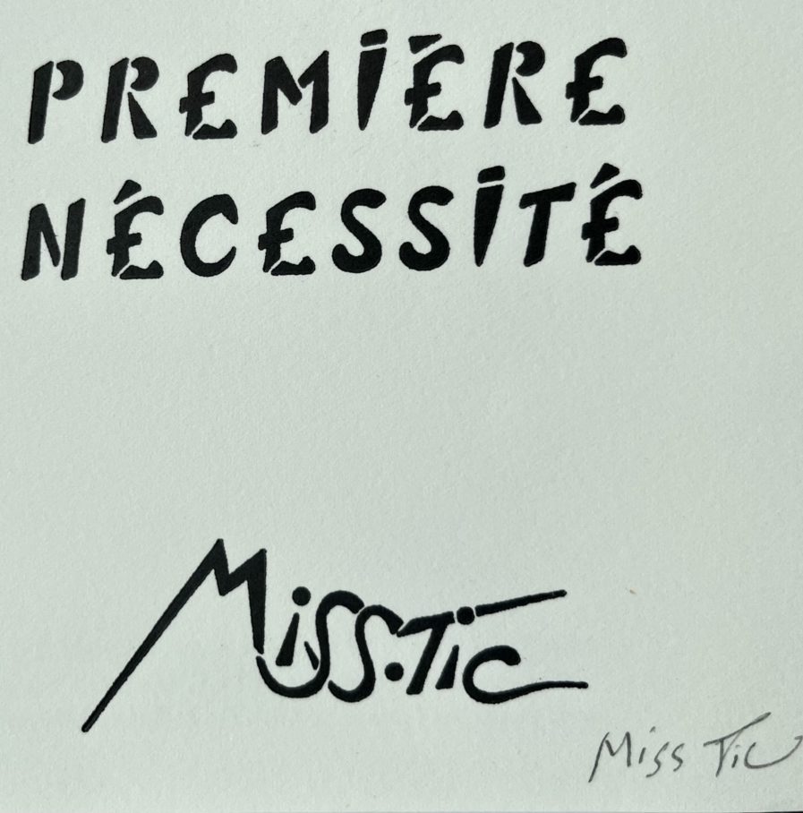 Estampe originale (typographie) numérotée et signée, au crayon par Miss.Tic. Il s'agit d'un cent exemplaires réservés à l'artiste (n° IX/C)