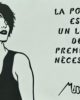 Jeune femme aux cheveux courts avec la maxime : "La poésie est un luxe de première nécessité. Miss.Tic".