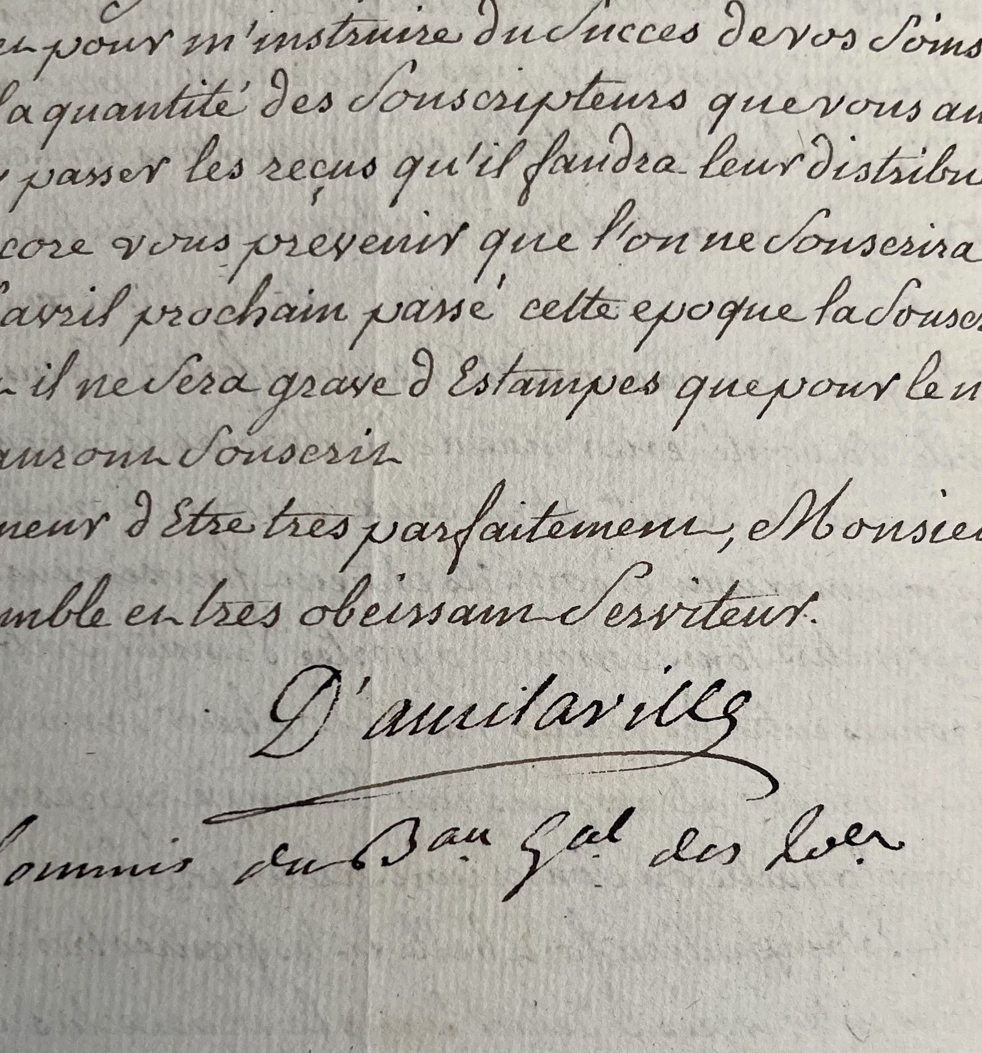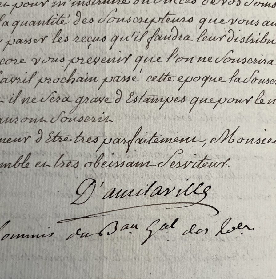 Étienne-Noël d'Amilaville (1723/1768)Lettre de Étienne-Noël d'Amilaville, ami de Voltaire, écrite après la réhabilitation de Calas ; il lance une souscription pour la gravure d'une estampe au bénéfice de la famille Calas.