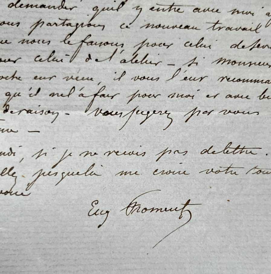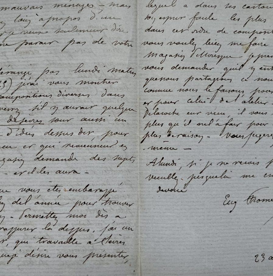 Eugène Fromentin (La Rochelle, 1820/1876)Lettre d'Eugène Fromentin au sujet de compositions pour le Magasin pittoresque et pour Sèvres.