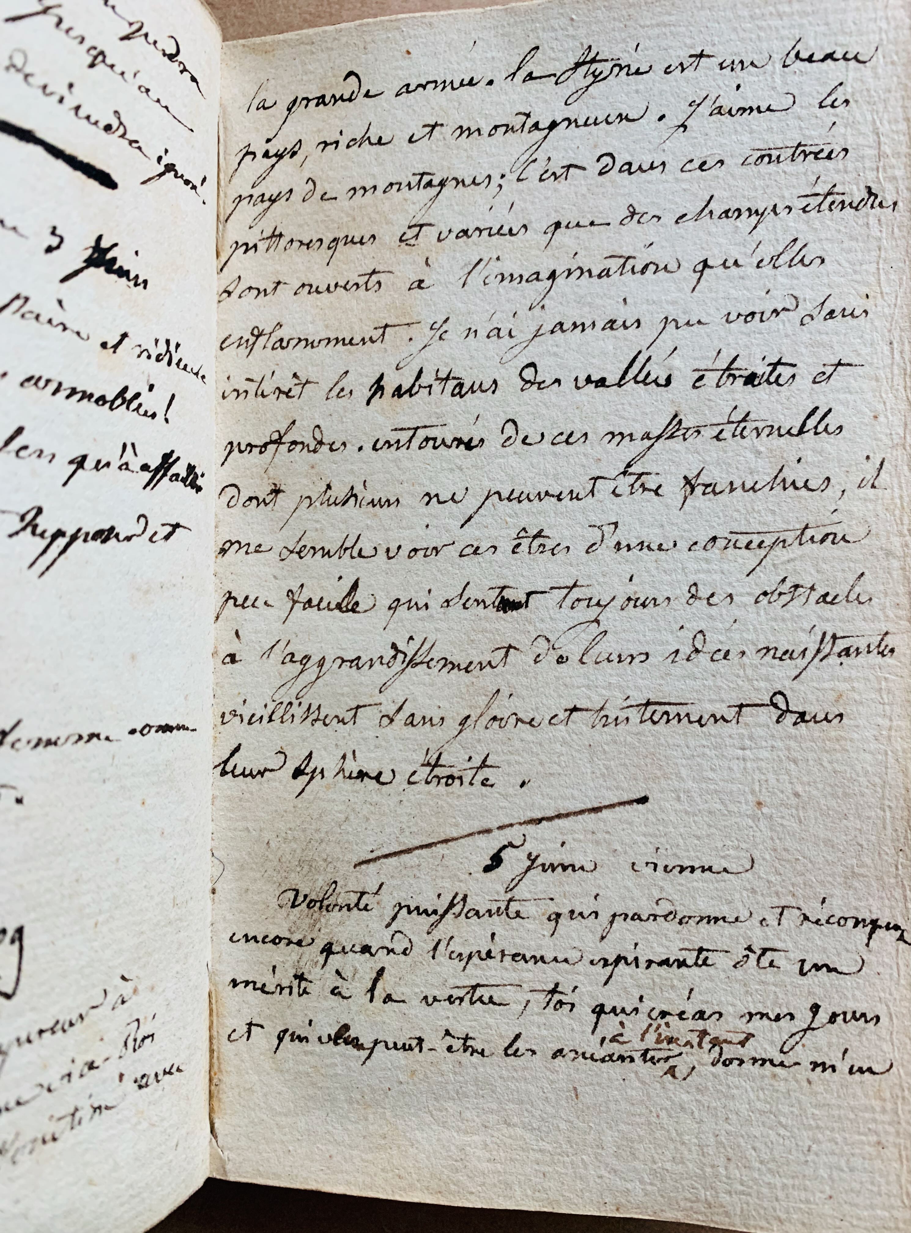 Journal personnel tenu par Anatole de Montesquiou-Fezensac (1788-1878), alors aide de camp du maréchal Davout, puis officier d'ordonnance de Napoléon 1er, et qui sera plus tard général et pair de France. Au total 214 pages écrites (numérotées 1 à 254, quelques pages blanches intercalées, les pages 77 à 81 sont manquantes).