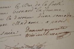 « Jay resus de monseigneur le Duc de La Forse par les mains de Monsieur Bernard la somme de vint cinq livres pour la dorreur d'une comode que jay fay marché avec Madame. A Paris ce 18 octobre 1719. Lasnier ».