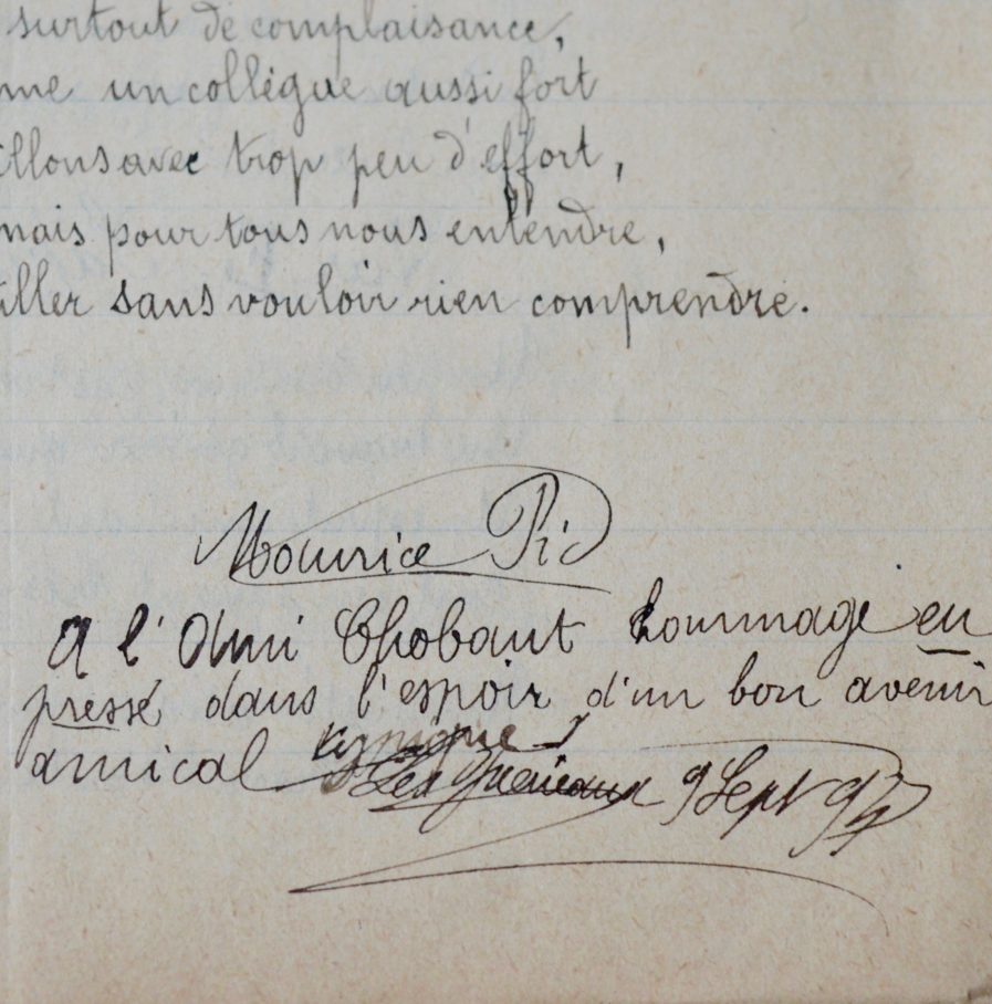 Maurice Pic (Marcigny (Saône-et-Loire), 1866/1957)Foisonnante et excentrique correspondance de Maurice Pic, accompagnée de manuscrits mêlant poésie et entomologie et d'un contrat de réconciliation.