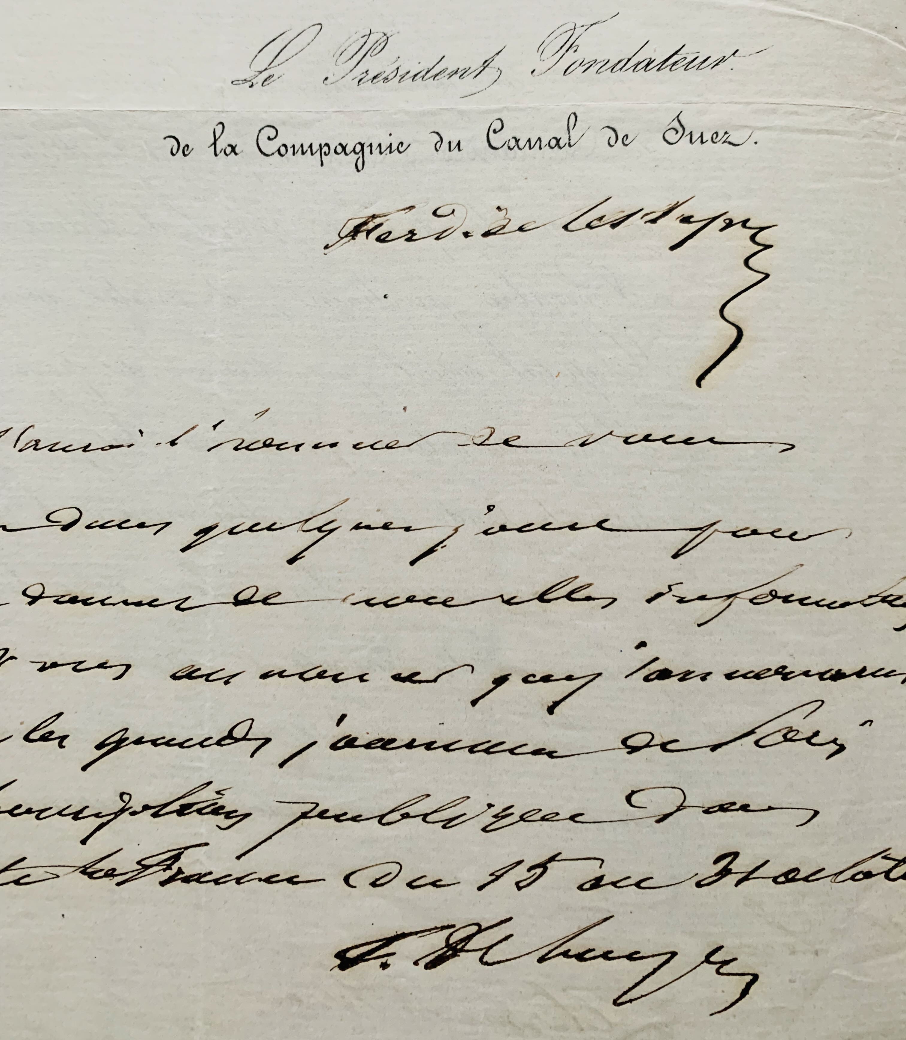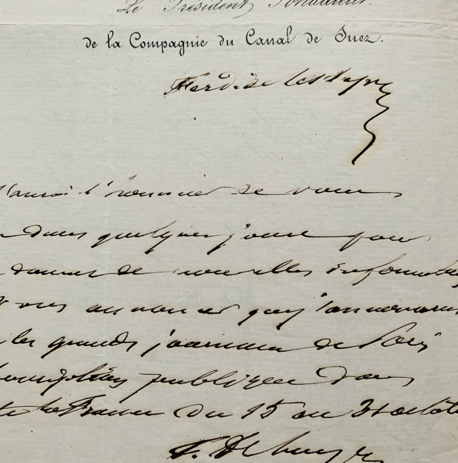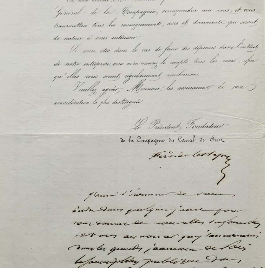 Il est joint une lettre signée de Ferdinand de Lesseps, au même, lui annonçant l'envoi d'instructions pour les souscriptions.