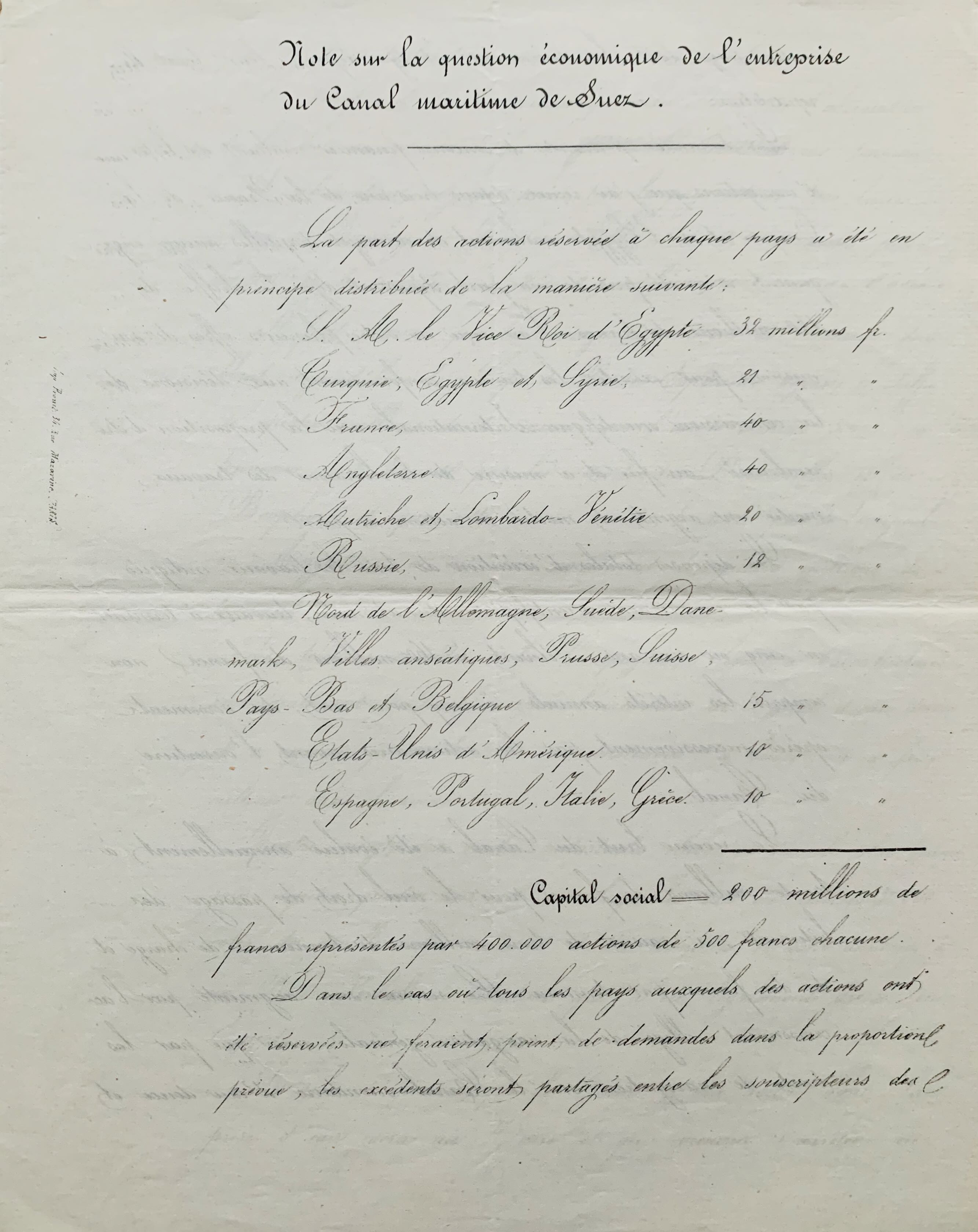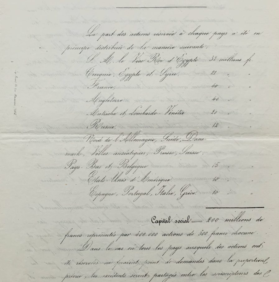 [La souscription sera ouverte le 5 novembre 1858 pendant un mois ; le 15 décembre, la Compagnie universelle du canal maritime de Suez sera officiellement constituée].