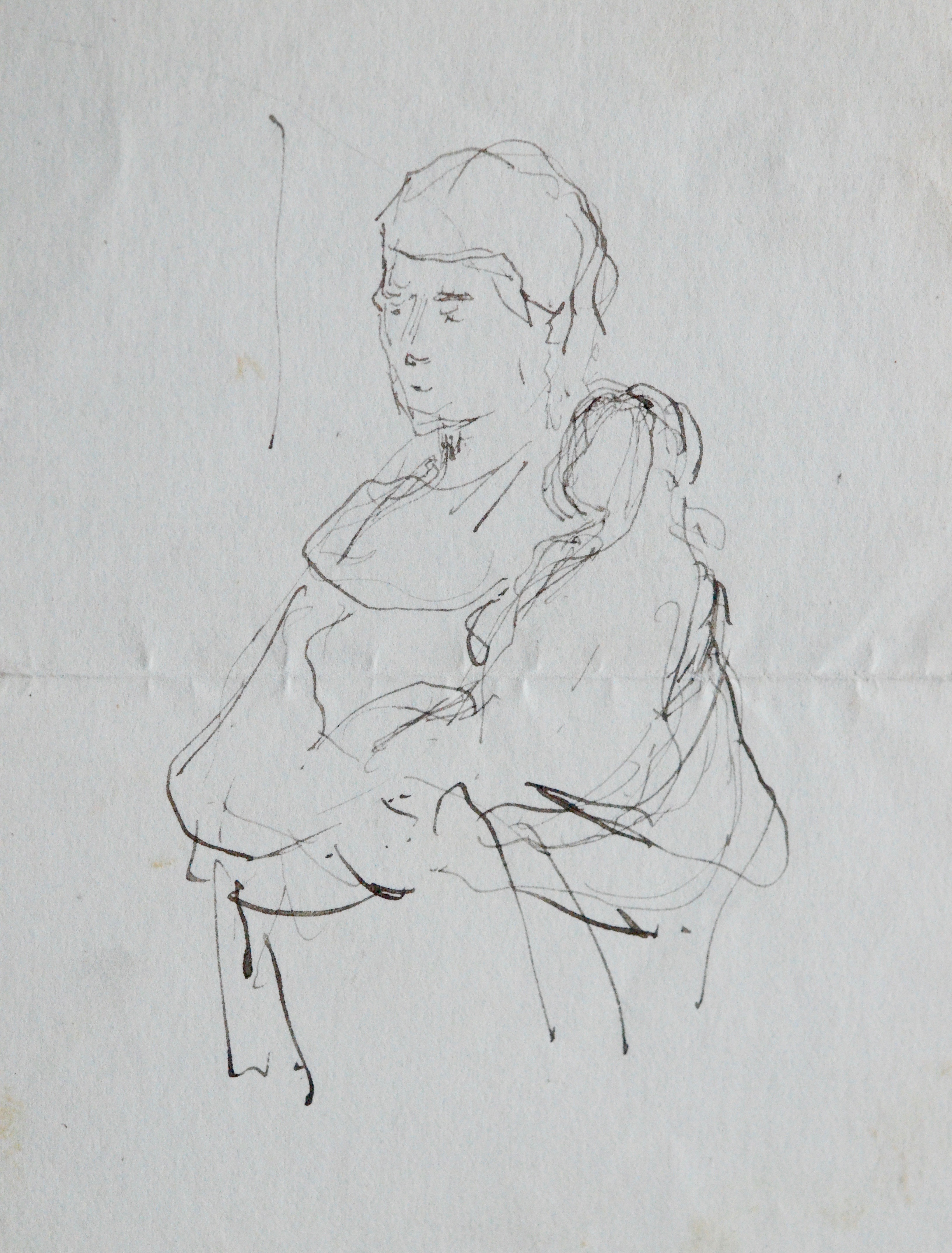 En regard du texte, beau dessin esquissé par Humbert à la plume, figurant une Vierge à l'enfant.