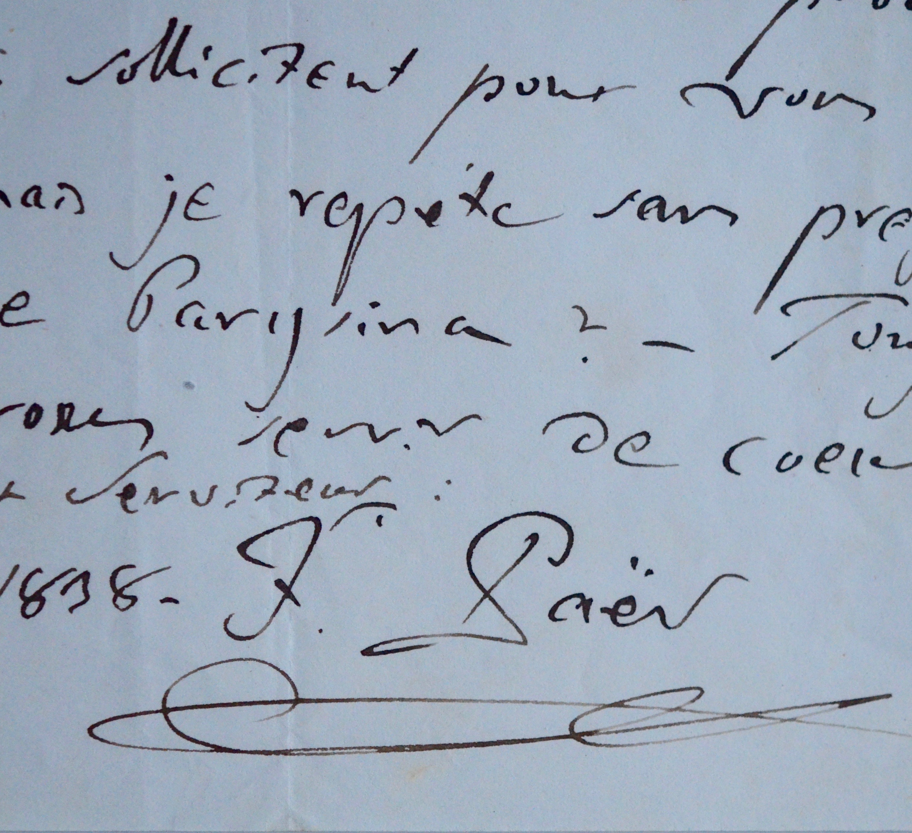 Lettre de Ferdinando Paër relative à l'opéra de Gaetano Donizetti "Parisina".