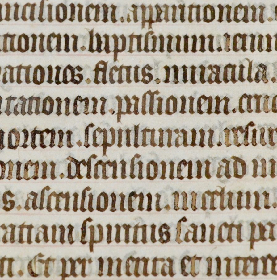 "[...] praedicationem passionem [...] mortem sepulturam resurrectionem desecutionem ad [...]".
