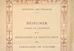 Sur un menu offert par le ministère des Finances en l'honneur de la Délégation La Fayette-Metz des Chevaliers de Colomb, le maréchal Foch a apposé sa grande signature, au crayon.