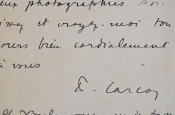 «Votre article de ce matin est épatant. Merci pour mon pauvre camarade. Voici les volumes promis. Vous trouverez avec eux deux photographies [...]».
