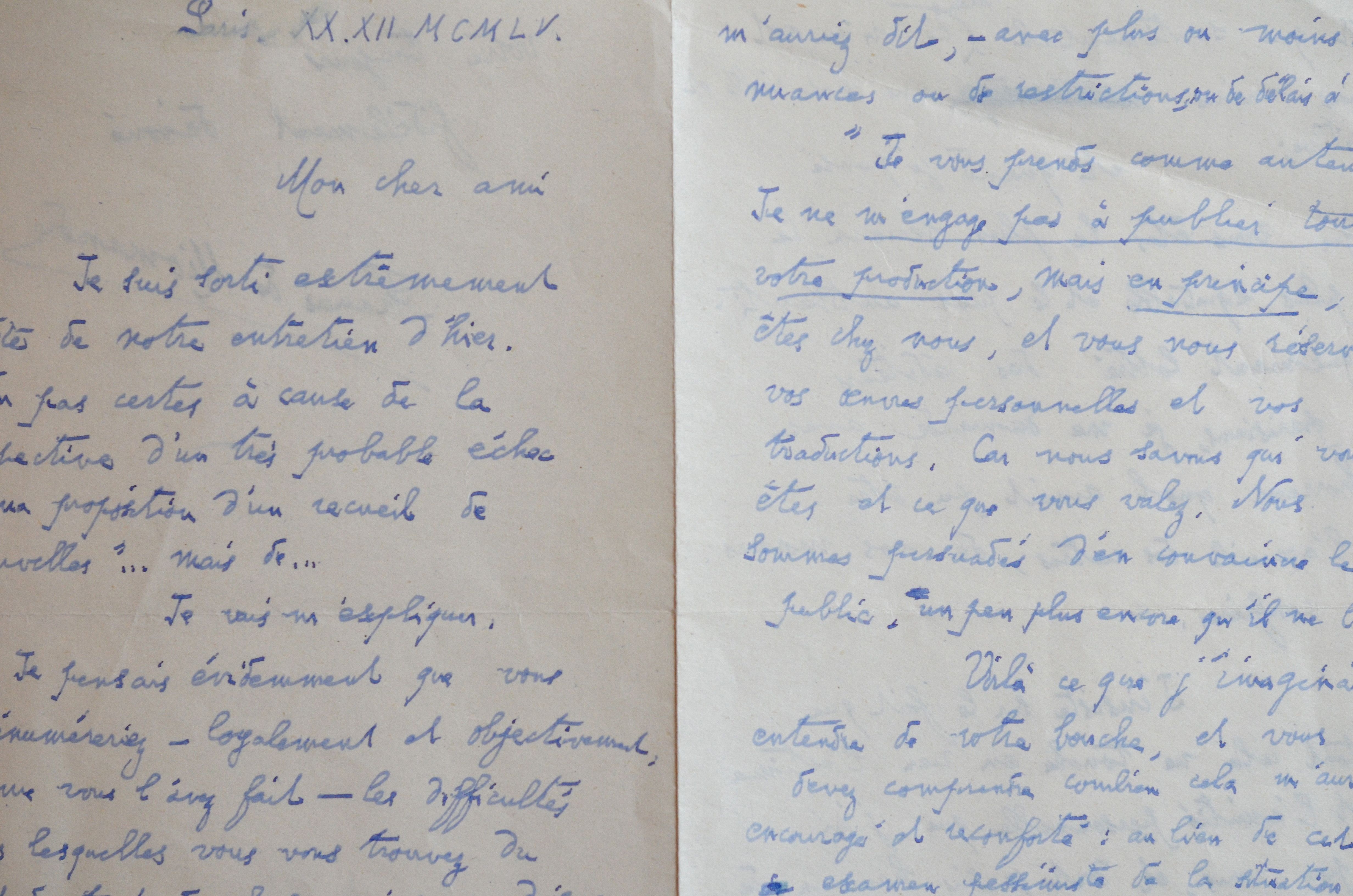 Destinataire : André Sabatier, éditeur chez Grasset.
