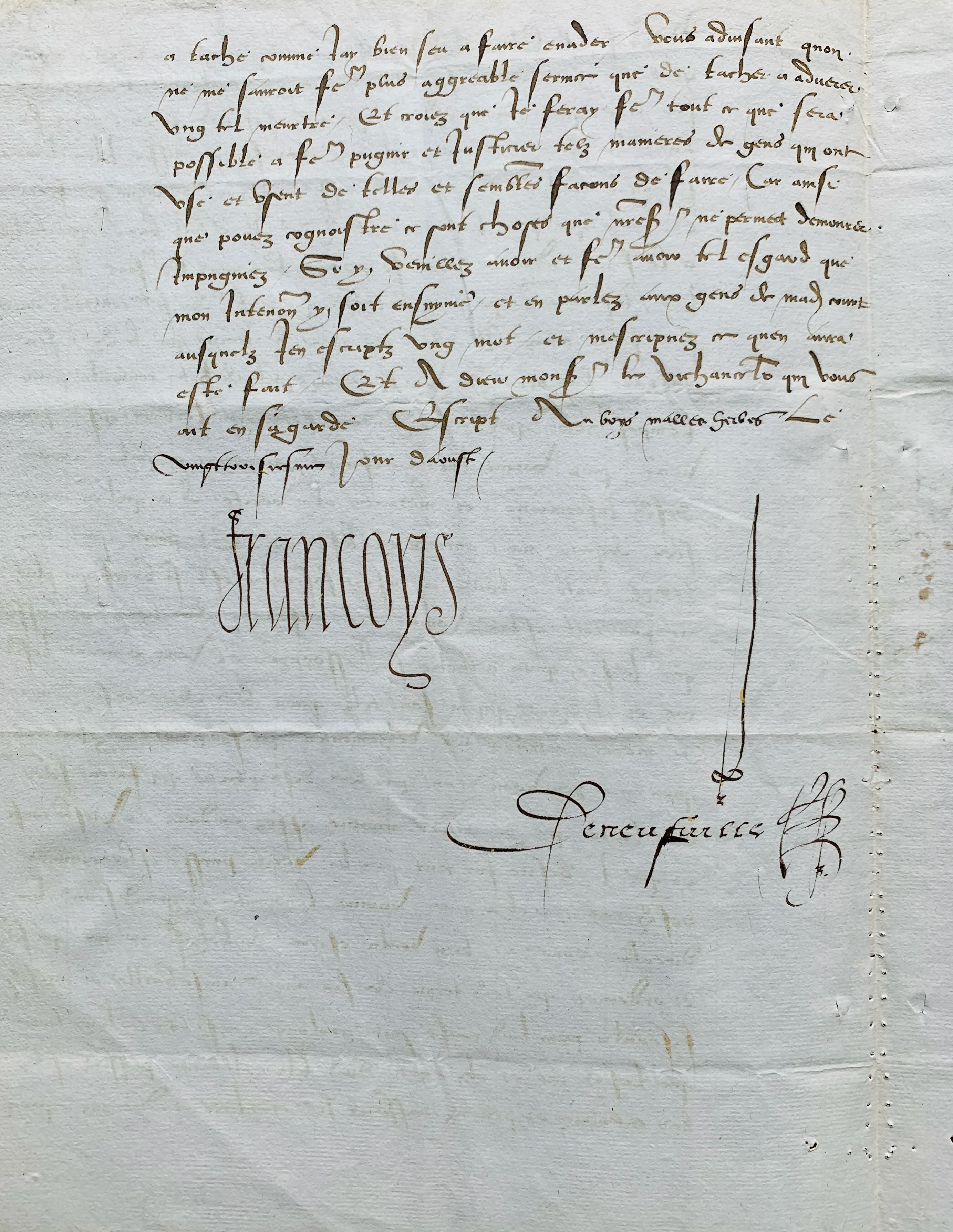 La lettre est contresignée par son secrétaire Nicolas de Neufville.