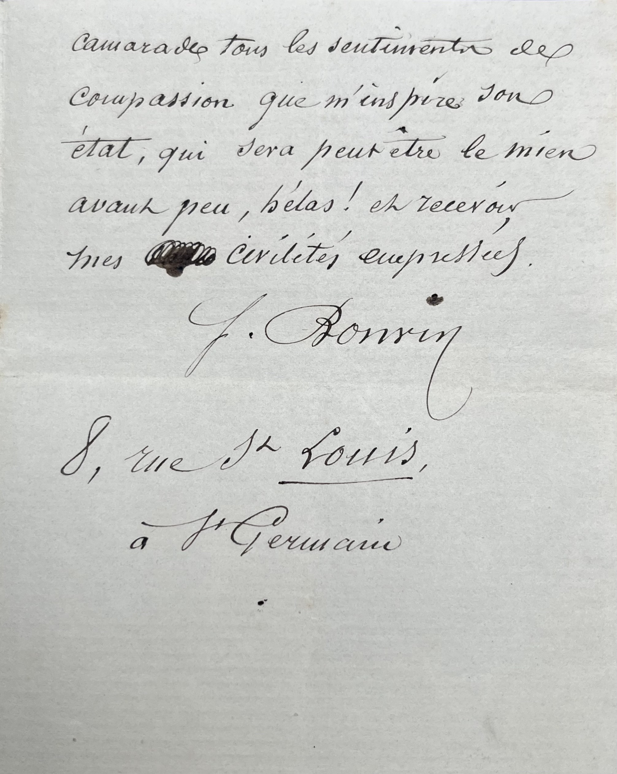 Lieu : [Paris] "8, rue Saint Louis à St Germain".