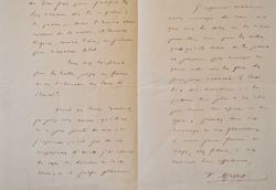 Frédéric Mistral (Maillane, 1830/1914)Mistral remercie son filleul pour l'envoi de son livre. "Ce mémorial très sincère de votre campagne au Tonkin contient des documents précieux pour l'histoire. Votre récit de la fusillade des neuf annamites est bien fait pour justifier les bons rêveurs de la "guerre à la guerre". Mais l'homme étant méchant de sa nature, il trouvera toujours, comme Caïn, un prétexte pour massacrer Abel [...]". Il évoque son compagnon d'armes Marchand, les pages écrites pour les soeurs de la Charité et son prochain mariage. "J'approuve entièrement votre mariage de coeur. Ainsi que vous le dites, on se marie pour soi, non pour les autres, quels qu'ils soient, et les parents ne peuvent pas envisager ce grand acte avec les yeux des principaux intéressés. Le Christ l'a dit divinement : "Tu quitteras ton père et ta mère pour suivre ton époux ou ton épouse". Présentez donc mes hommages et mes félicitations à votre jeune femme [...]".