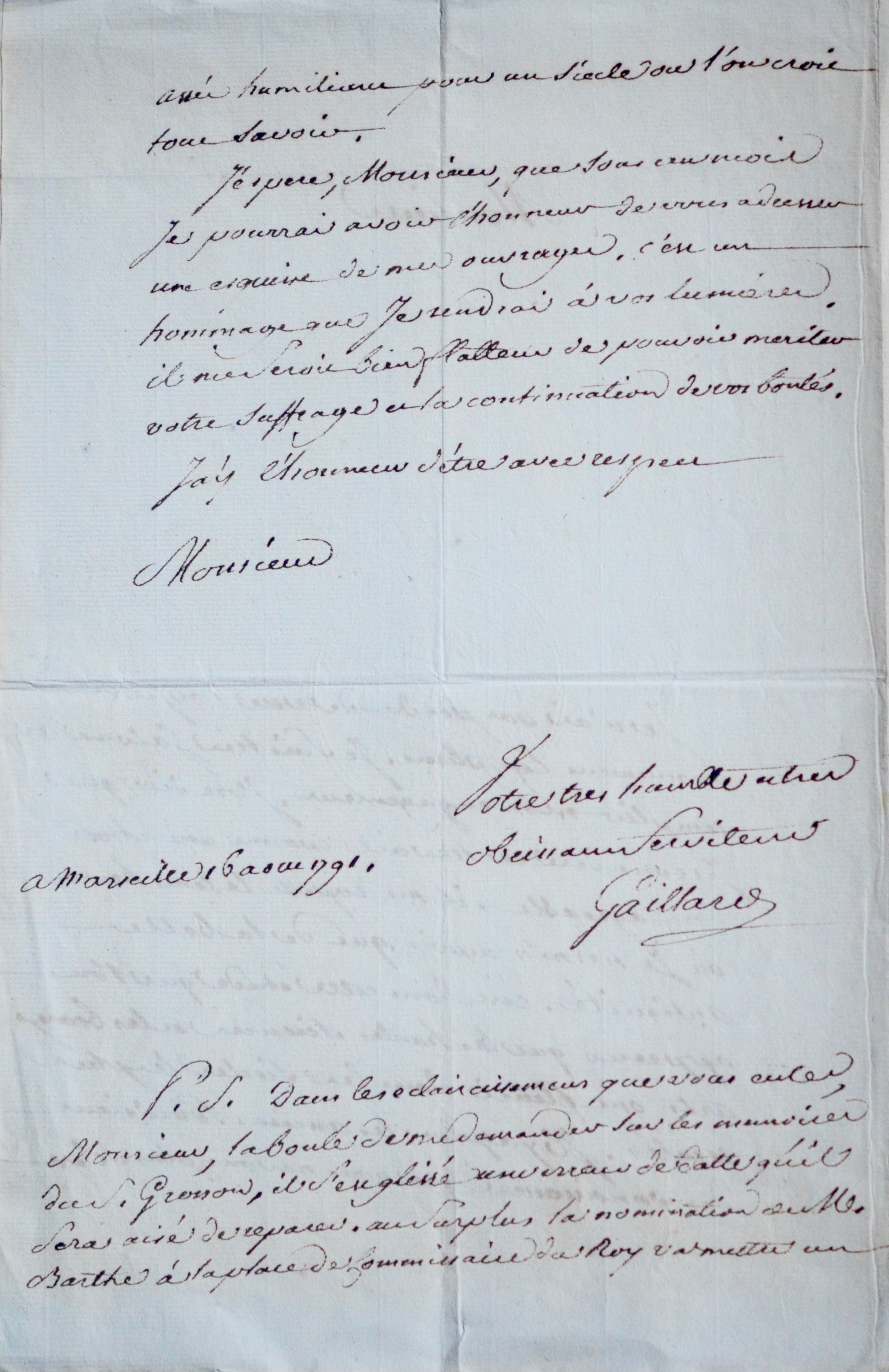 Gabriel-Henri Gaillard (Ostel, 1726/1806)Jolie lettre de l'Académicien Gaillard :