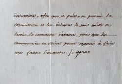 Dominique Joseph Garat (Bayonne, 1749/1833)Intéressante lettre de Garat qui tente de sauver de la fonte quatre chefs d'oeuvre en argent sculptés par Jacques Sarrazin (1592/1660) et l'un des sculpteurs de la famille Coustou (peut-être Guillaume Coustou (1670/1746), l'auteur des Chevaux de Marly). "Quatre anges d'argent, chefs d'oeuvre de Sarrazin et de Coustou, et plus remarquables par le travail que par la matière, ont été portés de l'Eglise des Grands Jésuites à la Monnaie, et sur l'observation qui vous fut faite par mon prédécesseur que ces objets précieux étaient susceptibles d'être conservés pour la gloire des arts, vous voulûtes bien ordonner qu'ils seraient exceptés de la fonte. La commission des monuments m'observe qu'ils sont restés à l'hôtel des Monnaies et que ce voisinage du creuset, lui inspire quelques inquiétudes. Il paraît d'ailleurs convenable de réunir ces quatre chefs d'oeuvre au dépôt des Petits Augustins [Musée des Monuments français] [...]". Il lui demande de prendre les mesures nécessaires pour les sauver. Malheureusement, une note en haut du document indique : "Le ministre en a fait suspendre la réponse attendu que le besoin doit passer avant la curiosité".