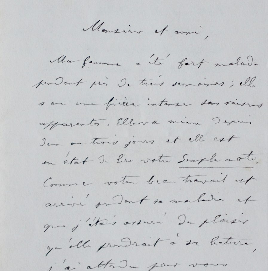 Dans le second courrier il félicite son correspondant et annonce la maladie soudaine de sa femme.