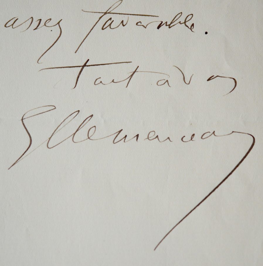 Lettre de Georges Clémenceau adressée à son ami, l'éditeur Eugène Fasquelle (1863-1952) :