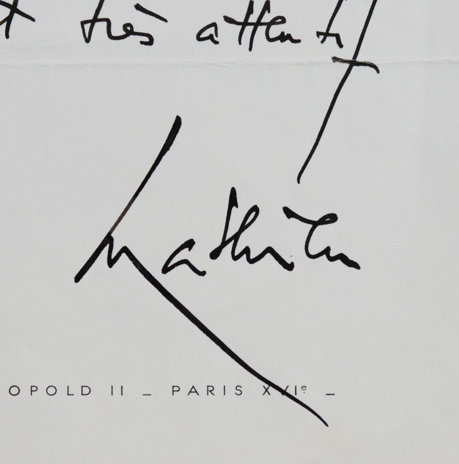 Georges Mathieu (Boulogne-sur-Mer, 1921/2012)Longue et très belle lettre, rédigée de l'écriture graphique de Georges Mathieu, et adressée au philosophe, poète, traducteur et journaliste Pierre Boutang.