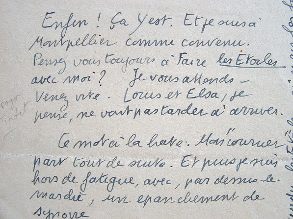 Georges Sadoul rejoint Aragon et Triolet à Montpellier pour boucler Les Etoiles.