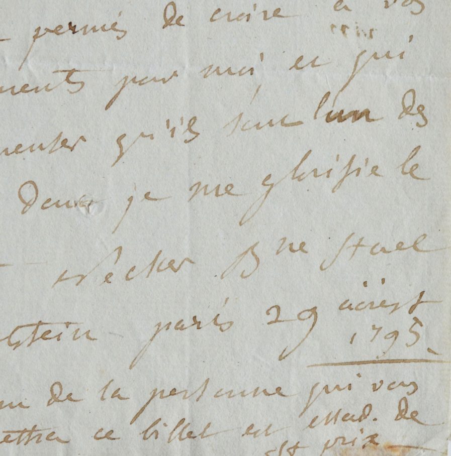 Germaine de Staël (Paris, 1766/1817)Lettre écrite durant son court séjour à Paris, avec Benjamin Constant, avant qu'elle ne soit exilée par le Comité de Salut public.