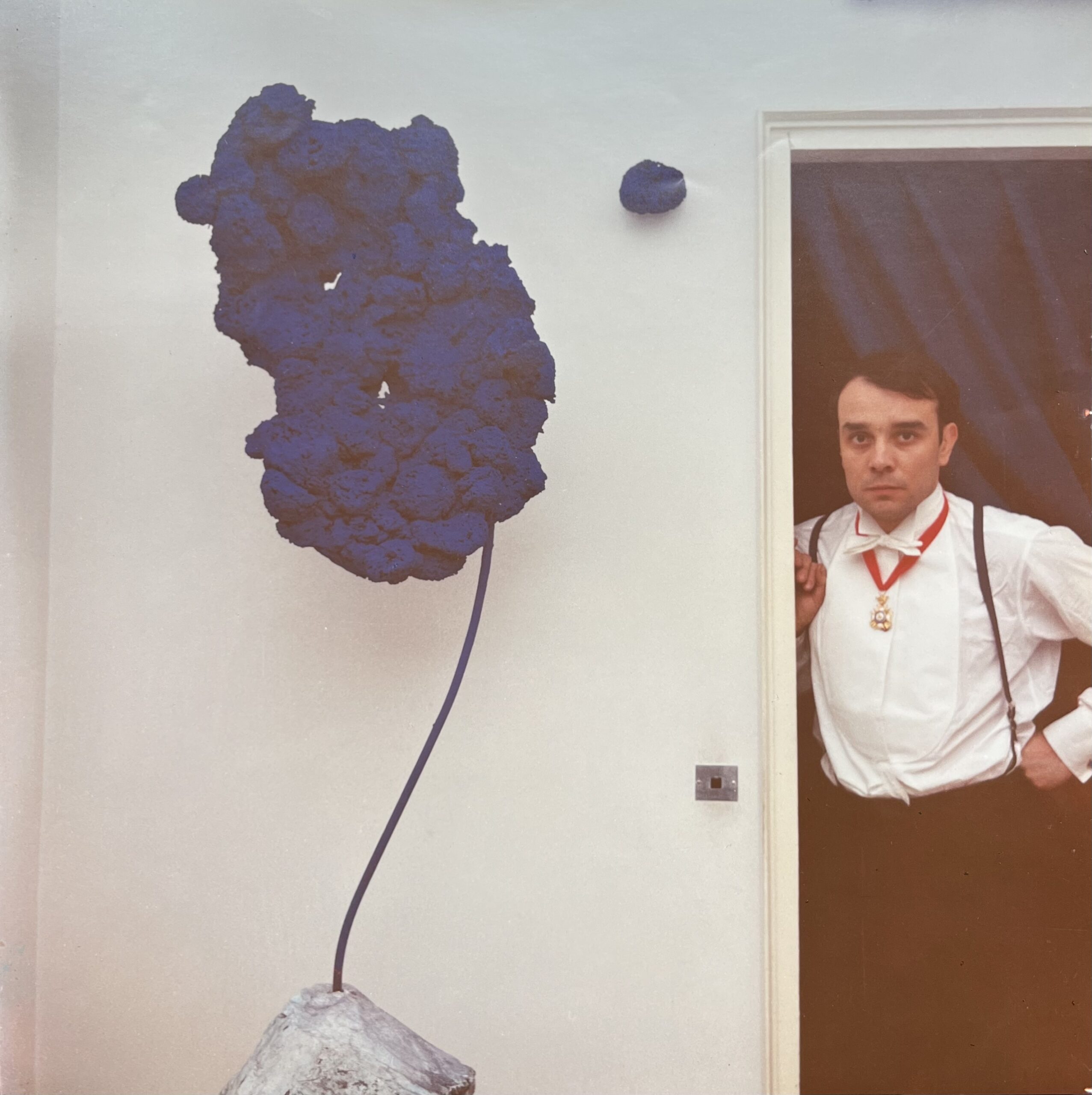 Grande photographie d’Yves Klein avec sa sculpture éponge SE167
