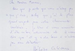 Jolie lettre d'admiration à Félicien Marceau « bien que je sache que vous n'aimez pas ce que j'écris ».