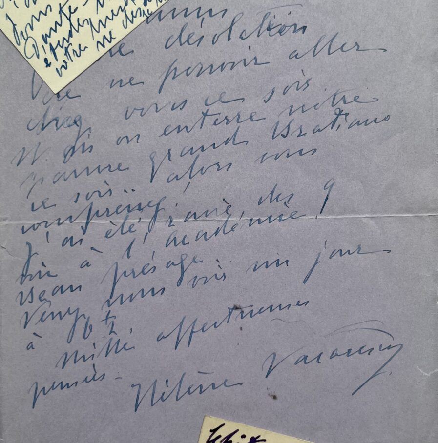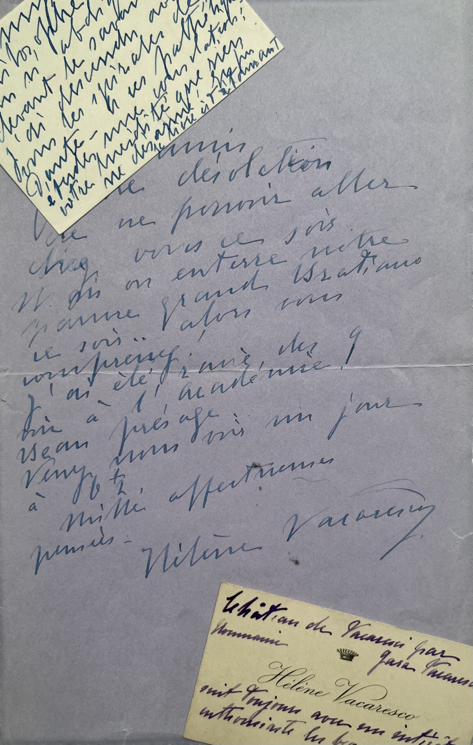 "Chers amis. Quelle désolation de ne pouvoir aller chez vous ce soir. Mais on enterre notre pauvre grand Bratianu ce soir… Alors, vous comprenez ! J’ai été ravi de vous voir à l’académie. Beau présage. Venez nous voir un jour [...]".