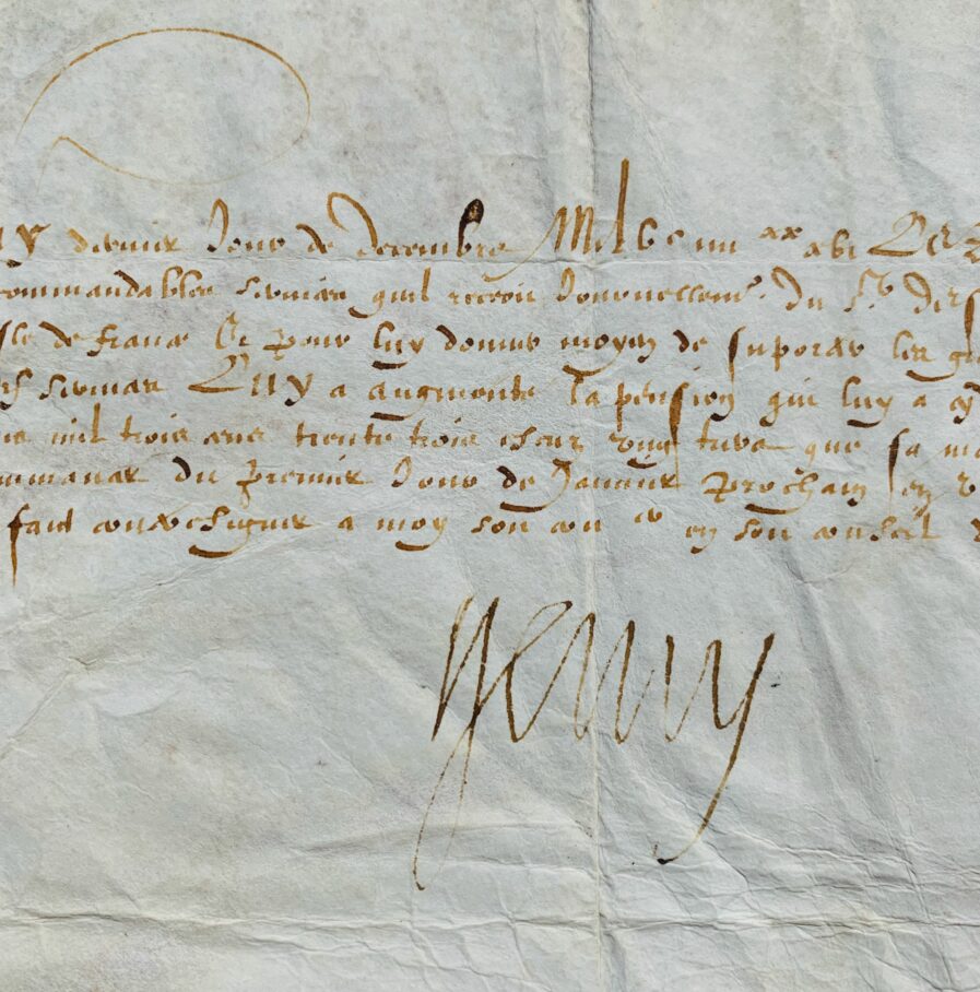 Henri IV (Pau, 1553/1610)Henri IV accorde un brevet de pension pour Antoine d’Estrées (vers 1529-1609), le père de Gabrielle d'ESTRÉES, célèbre maitresse et favorite d'Henri IV (de 1591 à sa mort survenue en 1599).