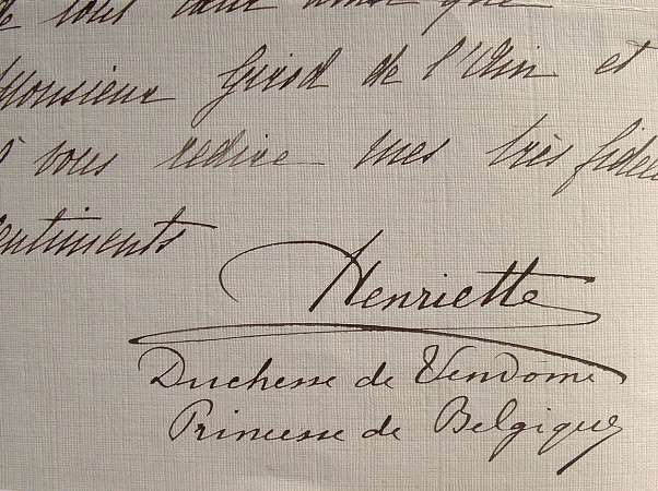 «La part que vous voulez bien prendre à notre joie et au bonheur de notre fille, nous touche profondément le Duc de Vendôme et moi [...]». [Elle annonçait le mariage de sa fille aînée Marie-Louise d'Orléans (1896/1973) avec le Prince Filippo de Bourbon des Deux-Siciles (1885/1949), mariage célébré le 10 janvier 1916].
